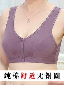 古今2件装无钢圈中老年文胸妈妈纯棉大码背心式内衣前扣义乳胸罩
