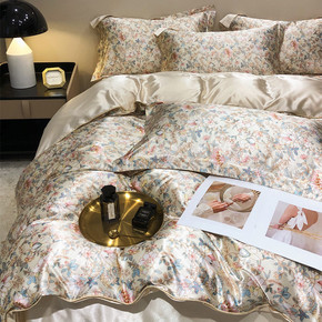 出口真丝四件套丝滑夏季桑蚕丝小碎花被套裸睡冰丝丝绸缎床上用品