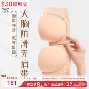 月色大胸无肩带内衣女蹦迪防滑防下垂大胸显小抹胸无痕大码文胸罩