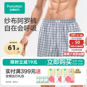 全棉时代男士内裤阿罗裤男生四角裤纯棉纱布平角内裤透气宽松短裤