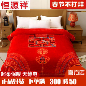 恒源祥拉舍尔毛毯被子加厚双人双层冬毯保暖盖毯婚庆大红结婚冬季