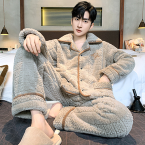 宽松大码男士珊瑚绒家居服睡衣可外穿法兰绒秋冬新款加厚加绒套装