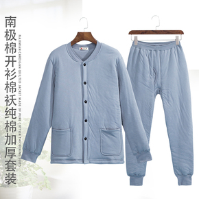南极棉中老年开衫保暖内衣套装男纯棉加厚爸爸装加肥冬季秋衣秋裤