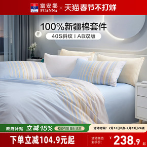 富安娜套件全棉纯棉四件套中性床罩100床单被套学生宿舍三件套新