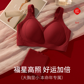 本命年套装红色内衣女胸大显小结婚新娘收副乳防下垂无痕内裤文胸