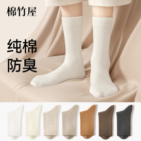 袜子女款纯棉夏季薄款中筒2025新款爆款春秋白色月子无骨防臭长袜
