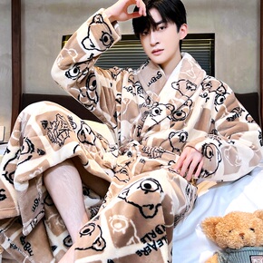 睡袍睡衣男秋冬季加厚珊瑚绒大码外穿浴袍保暖长袖春秋法兰绒新款