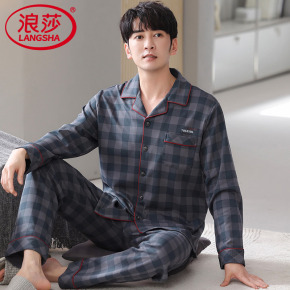 浪莎睡衣男士春秋季纯棉长袖全棉薄款2025新款开衫大码家居服套装