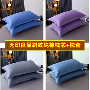 100%斜纹全棉纯色枕头枕芯套装单个成人家用学生定型护颈酒店一对