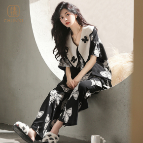 睡衣女夏季纯棉布料100全棉短袖长裤家居服2025新款娃娃领可外穿
