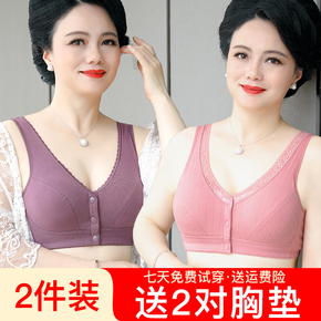 中年妈妈内衣文胸50岁中老年女前扣胸罩无钢圈纯棉背心式夏季薄款