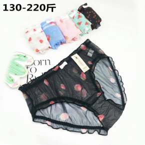 大码内裤女200斤胖mm中腰蕾丝日系可爱网纱透视速干薄款三角裤头