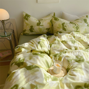 温柔的春天|渲染油画风郁金香纯棉四件套氛围感绿色全棉床品1.8m