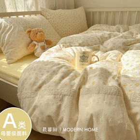 A类双层纱床上四件套纯棉全棉新款田园床单件被套被罩宿舍三件套4