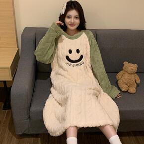 珊瑚绒睡裙女秋冬季加大码200斤胖妹加绒加厚保暖法兰绒宽松睡衣