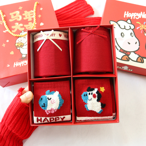 马年本命年袜子男女款新年礼物礼盒红色棉袜2026属马秋冬中筒纯棉