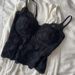 辣妹风网红性感雷丝美背吊带一体杯纯欲修身百搭磨绒打底背心上衣