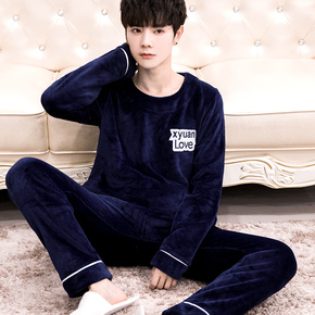 芬腾蓬蓬绒睡衣男秋冬季套装青年男款珊瑚绒加绒加厚防静电家居服