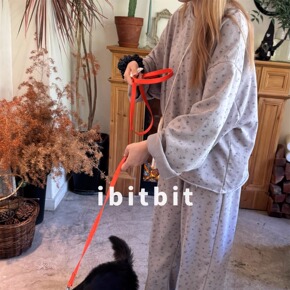 ibitbit露肩圆领卫衣长袖长裤休闲卡通猫碎花可外穿家居服女原版