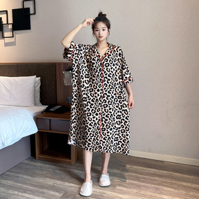 夏天开衫大码胖mm薄款棉绸睡裙女短袖卡通人造棉200斤睡衣连衣裙