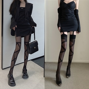 吊带绑带黑丝袜连裤袜子女暗黑jk辣妹长筒袜超薄性感夏季2022新款