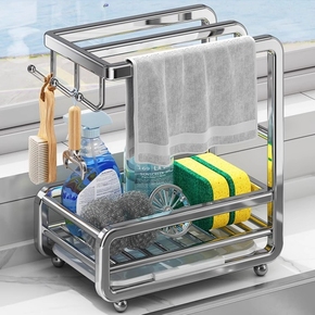 不锈钢抹布架厨房置物架水槽洗碗布沥水架海绵沥水篮钢丝球收纳架