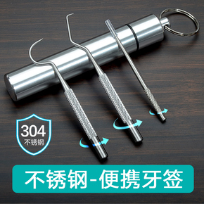 304不锈钢牙签超细牙缝钩针抠牙便携式牙签盒剔牙掏牙齿神器家用