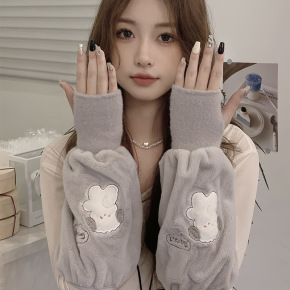 袖套女秋冬加绒新款手臂肘套袖可爱成人长裤防脏一体保暖护袖手套