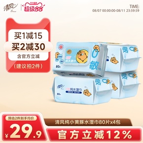 清风湿巾纯水80片4大包可擦私处家庭装整箱男女卫生湿纸巾家用