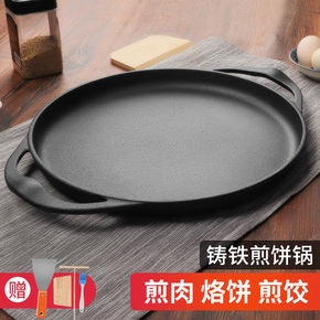 加厚双耳铸铁煎锅平底锅不粘锅家用商用燃气鏊子烙饼锅摆摊煎饼锅