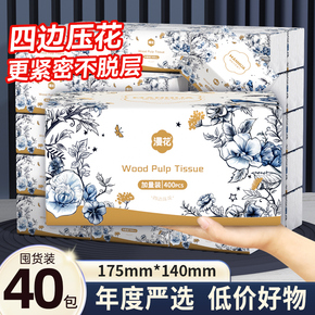 漫花400张大包纸巾抽纸家用实惠整箱装卫生纸原木面巾纸餐巾手纸