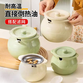 带滤网陶瓷猪油罐耐高温家用带盖食品级荤油辣椒油专用罐可放冰箱
