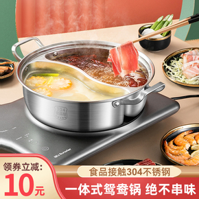 加厚304不锈钢火锅盆鸳鸯锅电磁炉专用火锅锅家用涮锅具一体成型