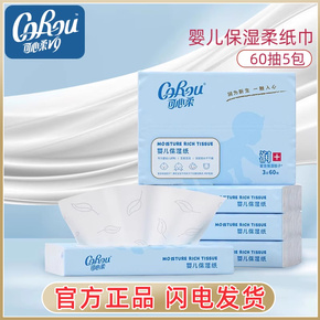 可心柔新生婴儿保湿柔纸巾 宝宝60抽5包便携柔润面巾纸 儿童抽纸