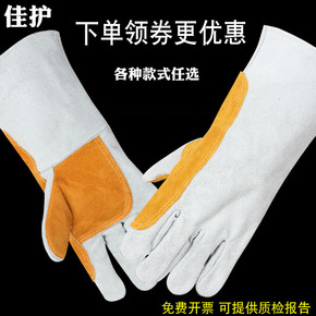 佳护牛皮电焊手套耐高温防烫长短款耐磨焊工隔热防护手套加厚加绒