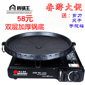 韩国烧烤盘无烟烤肉锅烤肉盘卡式炉+韩式烤盘家用户外不粘锅包邮