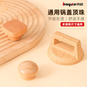 拜格通用锅盖顶帽不锈钢锅盖把手家用厨房玻璃锅盖配件木质耐高温