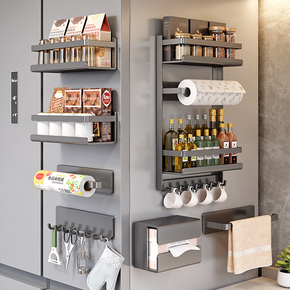 厨房磁吸冰箱外侧面置物架侧收纳挂钩纸巾架免打孔保鲜膜调料架子