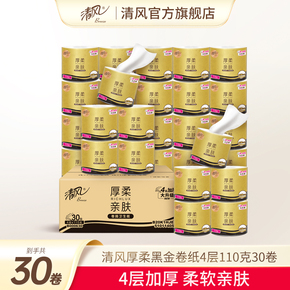 清风黑金卷纸4层110克30卷整箱厕纸手纸家用实惠卷筒纸卫生纸