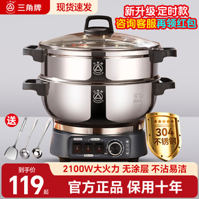 三角牌加厚304不锈钢电炒锅多功能炒菜家用电火锅蒸煮一体电热锅