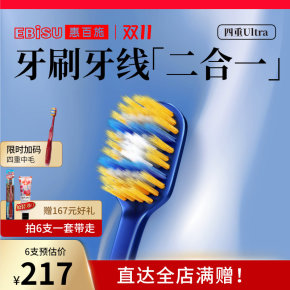 惠百施四重宽头牙刷软毛舒适顶配深洁高档成人男女牙线二合一家用