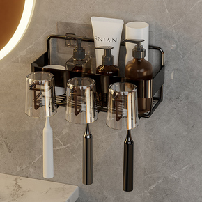 牙刷牙杯架子轻奢卫生间洗漱台置物架壁挂式免打孔牙缸收纳架套装