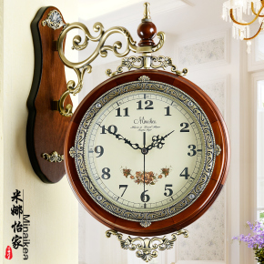 欧式客厅挂钟双面时尚实木两面艺术静音时钟钟表家用创意个性挂表