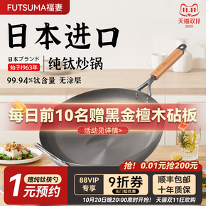 【进口旗舰】FUTSUMA福妻日本进口纯钛炒锅家用健康无涂层超轻锅