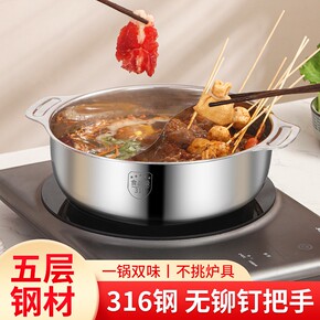 无铆钉316L不锈钢火锅鸳鸯锅家用汤锅一体成型无缝两味电磁燃气用