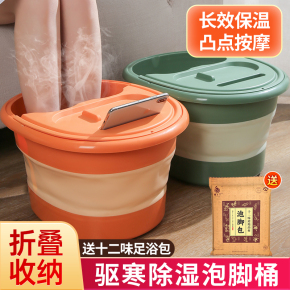 泡脚桶可折叠收纳家用简易按摩养生足浴盆过小腿带盖保温洗脚盆子
