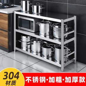 304带围栏不锈钢置物架收纳架子加厚落地多层厨房锅储物不绣钢式
