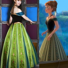 安娜公主裙COS冰雪奇缘anna长裙成人迪士尼裙子绣花2件套加冕礼服