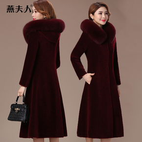 羊剪绒大衣女2025新款颗粒羊毛冬季妈妈狐狸毛海宁皮草外套中长款