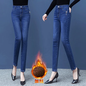 2025秋冬季高腰单裤加绒加厚牛仔裤女新款修身显瘦弹力小脚铅笔裤